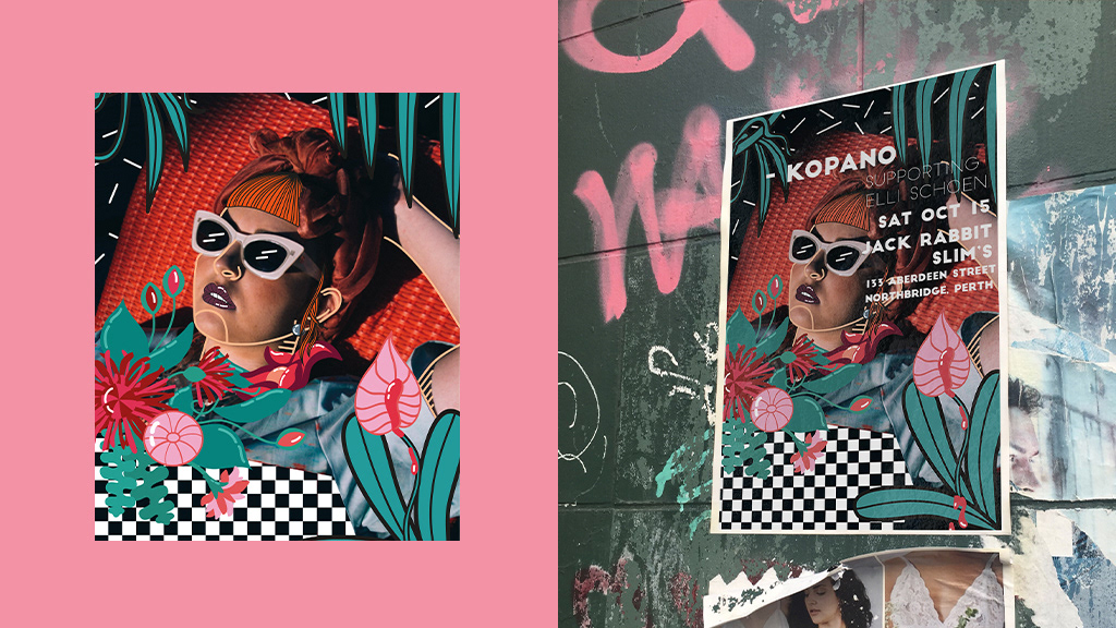 A vibrant and dynamic super pop floral poster designed for Australian singer